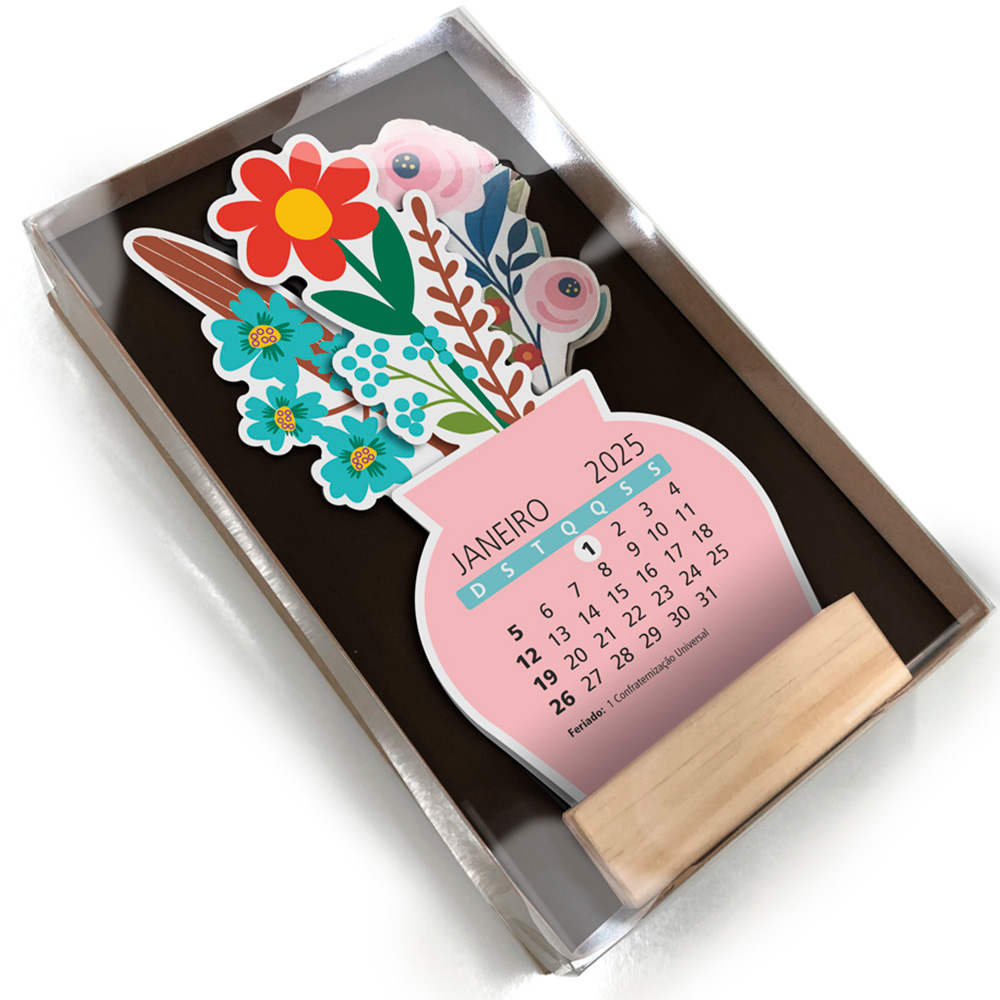 Tags: Calendário, Vaso de Flores, 2026, 19.5x10cm, Decoração, Presente, Escritório, Casa, Organização, Acessório de Mesa, Flores Artificiais, Produto #2355